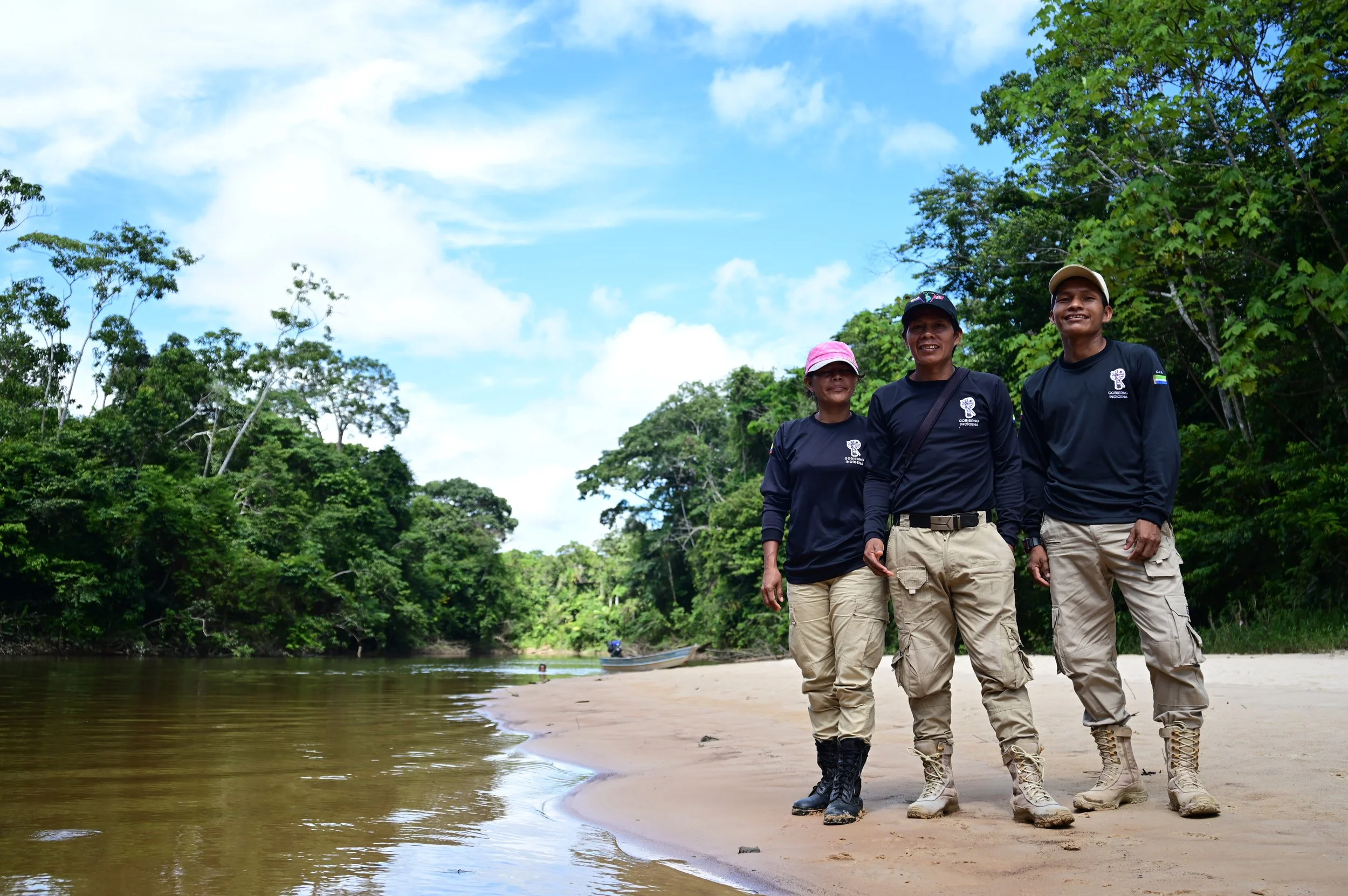 Mamerto saca un mapa, lo pone sobre la mesa y empieza a trazar la ruta que va a patrullar junto a Miriam, su esposa, y Camilo, un joven de la comunidad. El recorrido tomará unas cinco horas y se enfocará en tres afluentes del río Amacayacu: Agua Pudre, Agua Blanca y Caguimas. Todos llevan puesto el mismo uniforme: pantalones de senderismo, botas color caqui y camisa negra con un mensaje en la espalda que los identifica como 'Guardia Indígena Ambiental de San Martín de Amacayacu'.